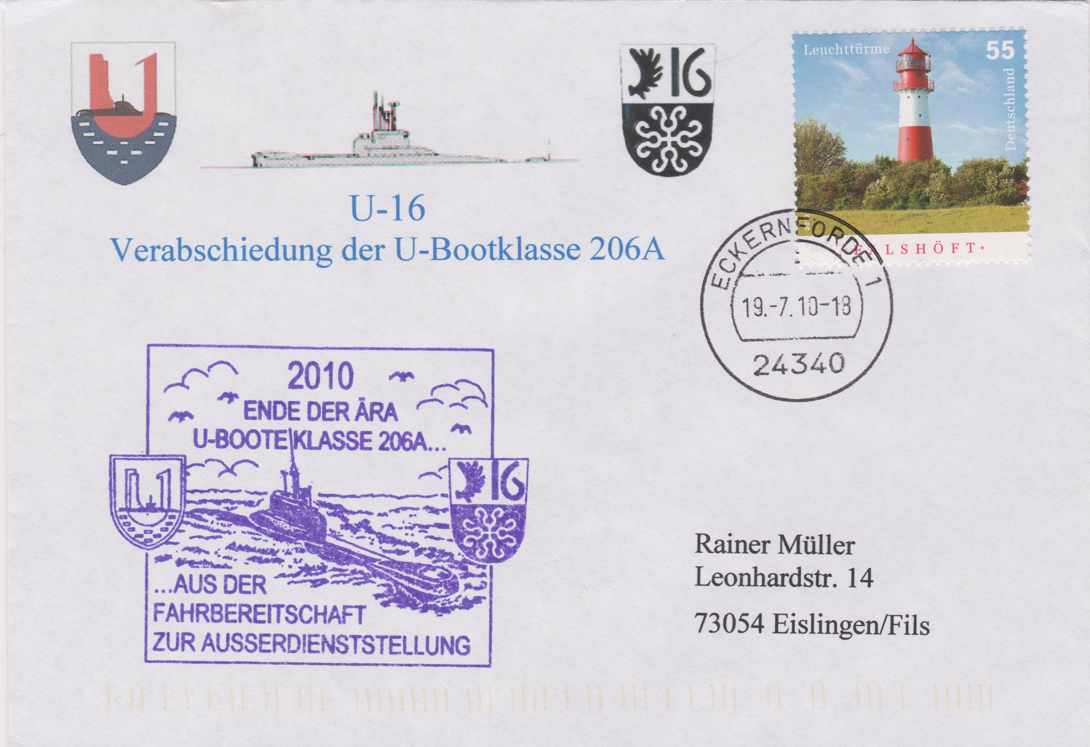 Dieser Beleg dokumentiert die Verabschiedung von U 16 als Teil der U-Bootklasse 206 A aus dem aktiven Dienst am 19.07.2010: