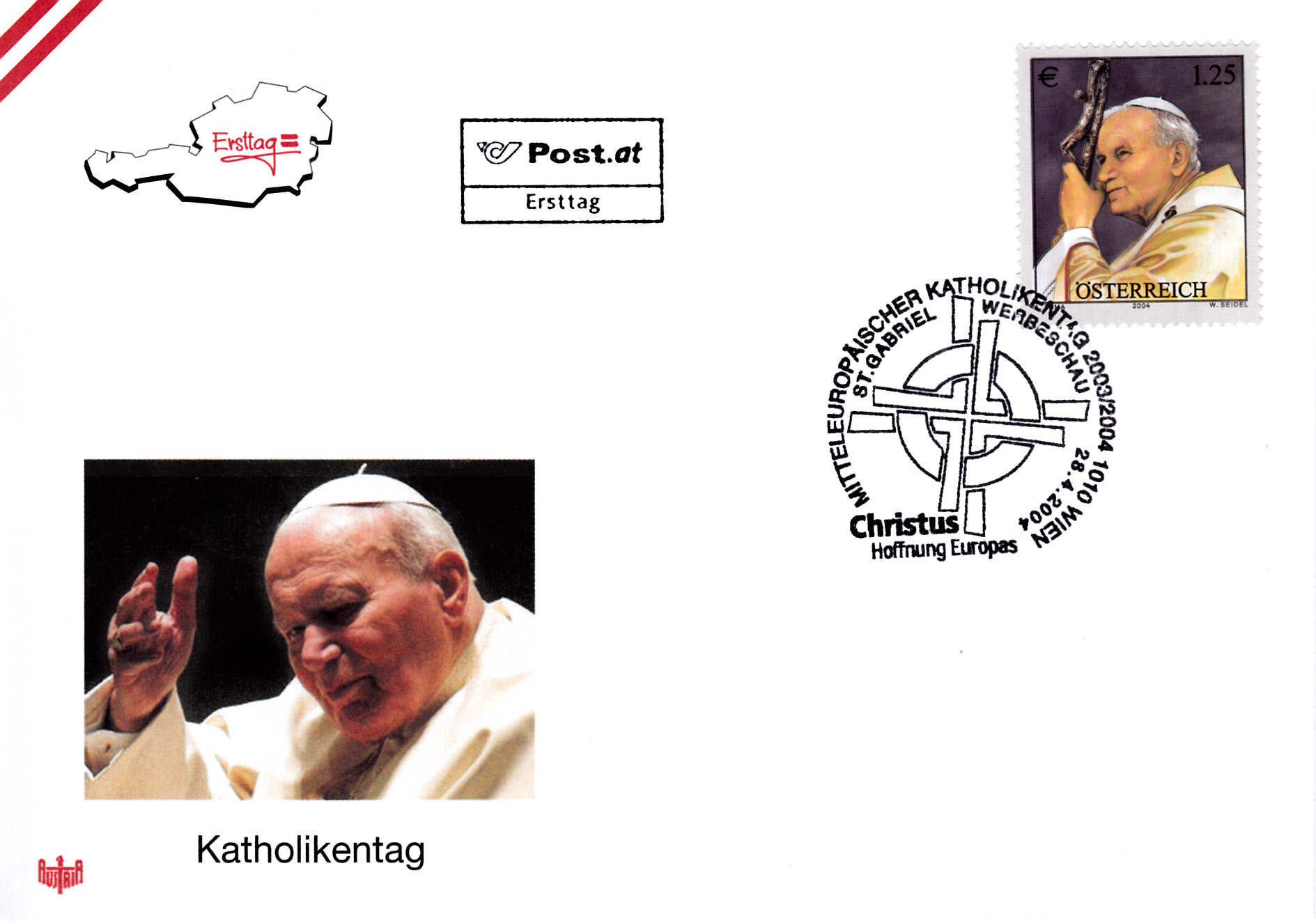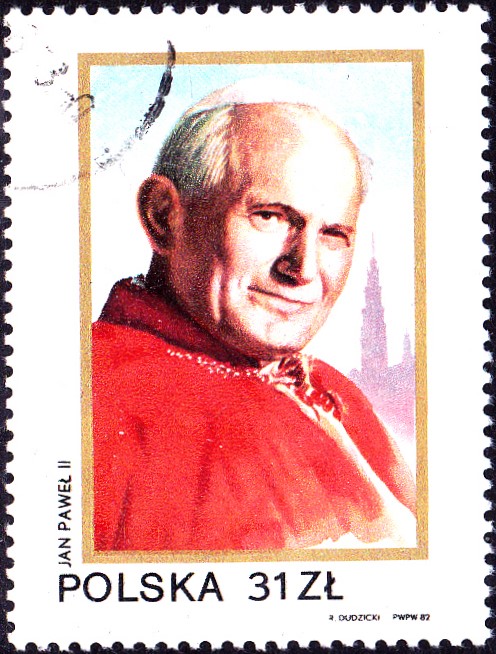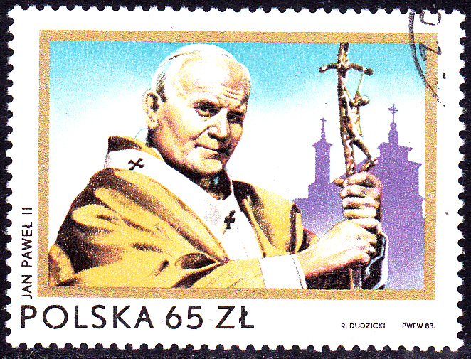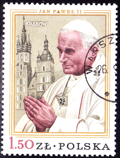 Zum 1. Besuch von Papst Johannes Paul II. in Polen ist in Polen diese Marke (MiNr 2629) mir Papst Johannes Paul II. vor der St.-Marien-Kirche in Krakau erschienen.