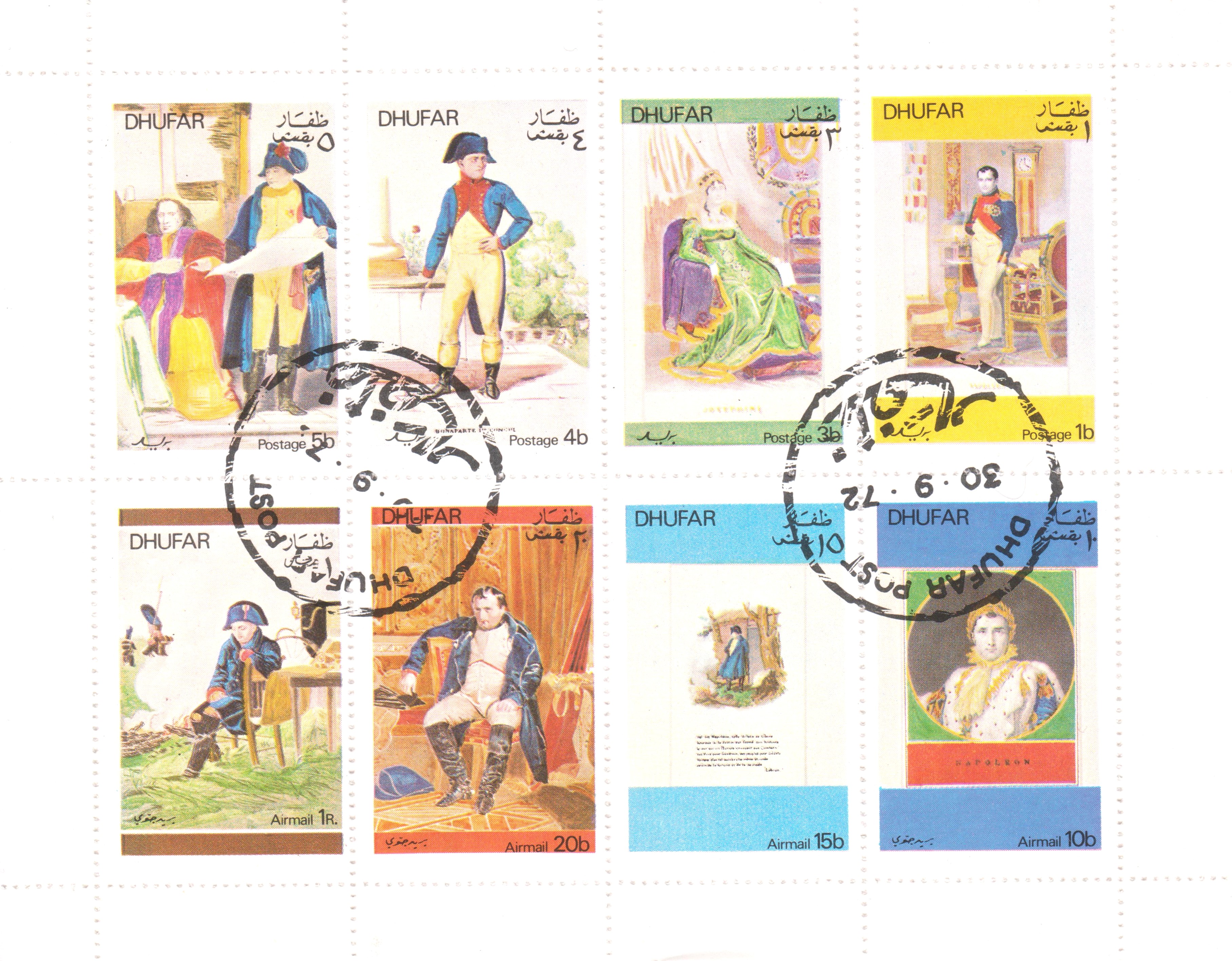 Kleinbogen DHUFAR mit 8 verschiedenen Motiven zum Thema Napoleon: