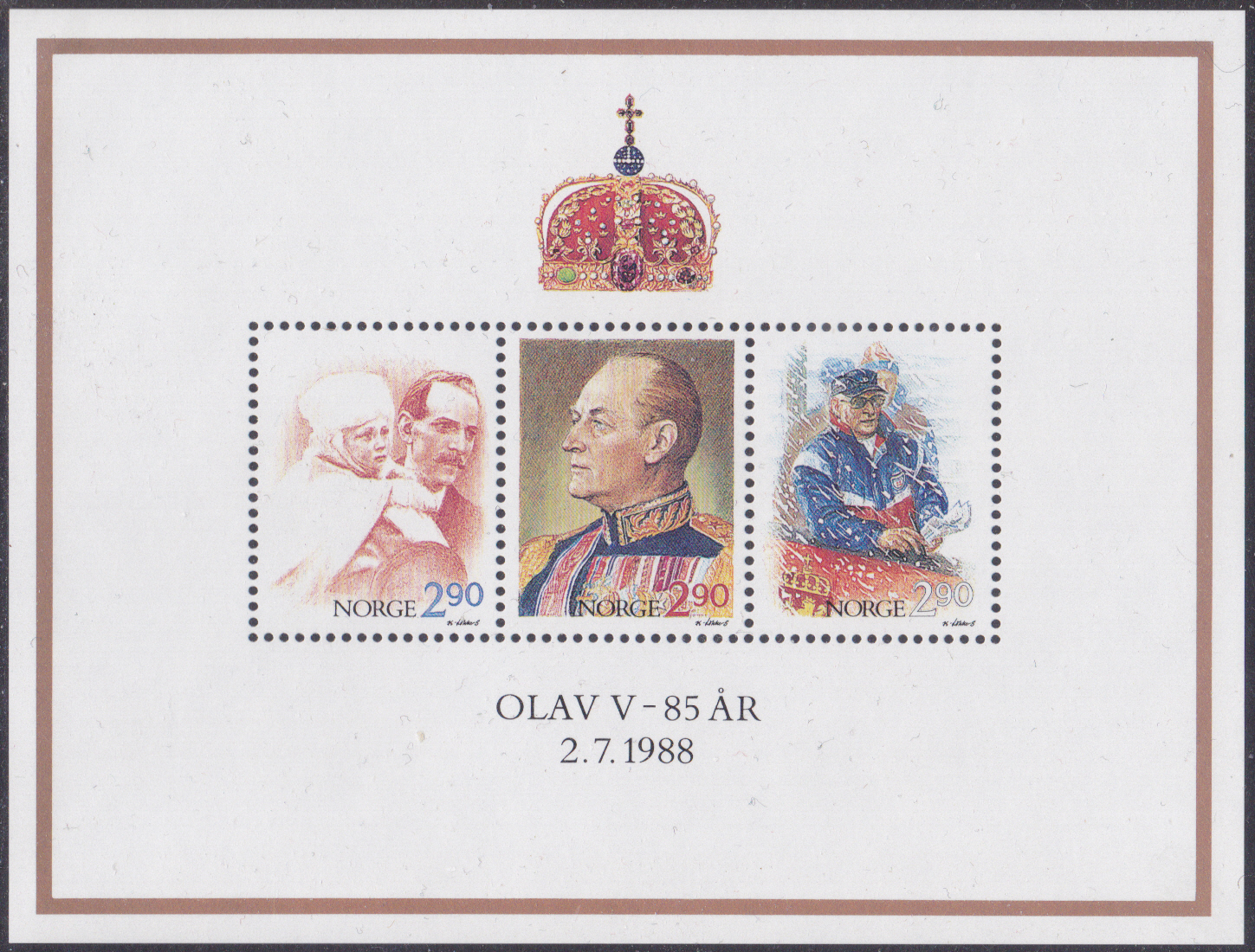 Zum 85. Geburtstag von König Olav V. erschien in Norwegen diese Marke (MiNr 988 II) mit einem Porträt von König Olav V..