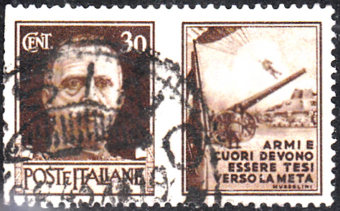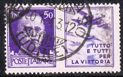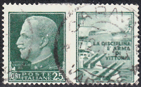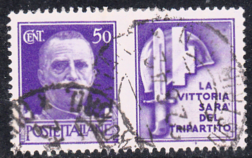 Die Marke mit Viktor Emanuel III. (MiNr 304) gibt es auch mit Aufdruck "REPUBBLICA SOCIALE ITALIANA" und Liktorenbündel (II). Hier zeige ich eine Marke (MiNr 642)