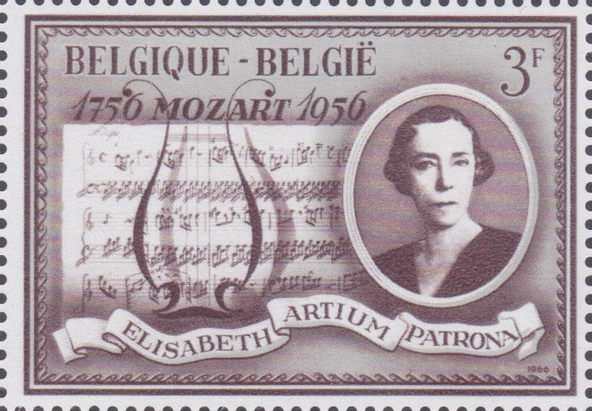 Eine zweite Marke (MiNr 1422) zeigt ein Porträt von Königin Elisabeth und eine Partitur einer Sonate von Wolfgang Amadeus Mozart, die er im Alter von 7 Jahren komponierte.