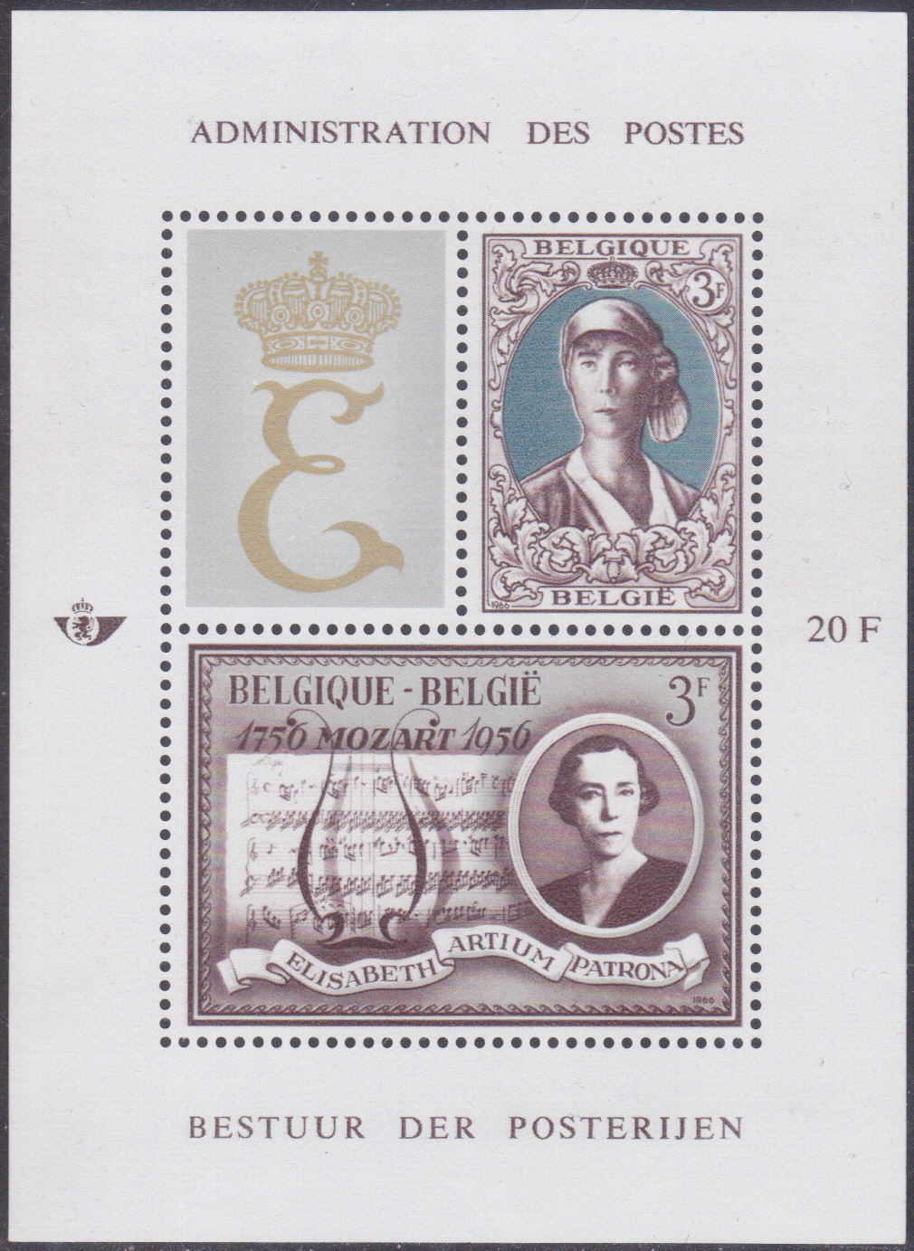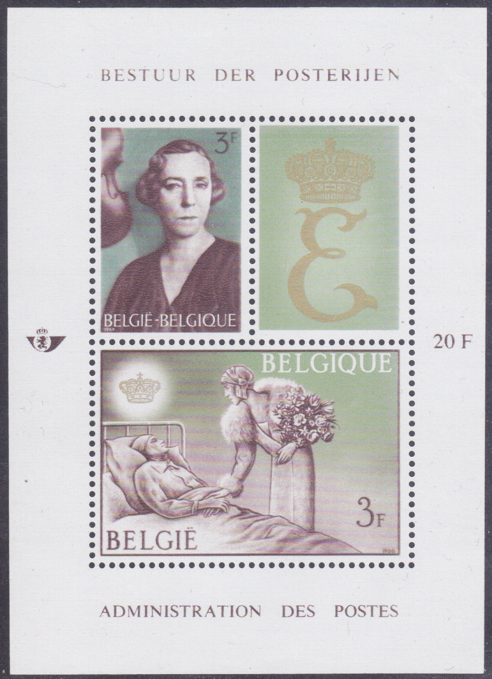 1966 ist in Belgien in einee Blockausgabe zu Ehren von Königin Elisabeth diese Marke (MiNr 1421) mit ihrem Porträt erschienen.