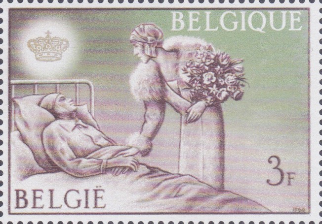 Diese Marke (MiNr 1424) zeigt Königin Elisabeth ab einem Krankenbett.