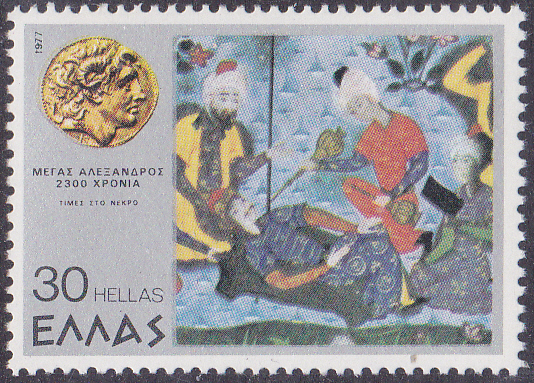 Auf der letzten Marke (MiNr 1273) ist "Der Tod von Alexander dem Großen" nach einer persische Miniatur abgebildet.
