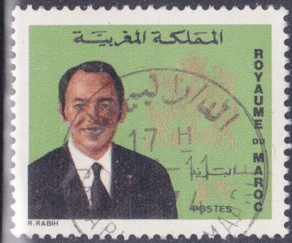 Ab 1973 sind in Marokko Freimarken mit König Hassan II. und dem Staatswappen erschienen. Ich zeige hier eine Marke zu 0,20 Dh (MiNr 726).