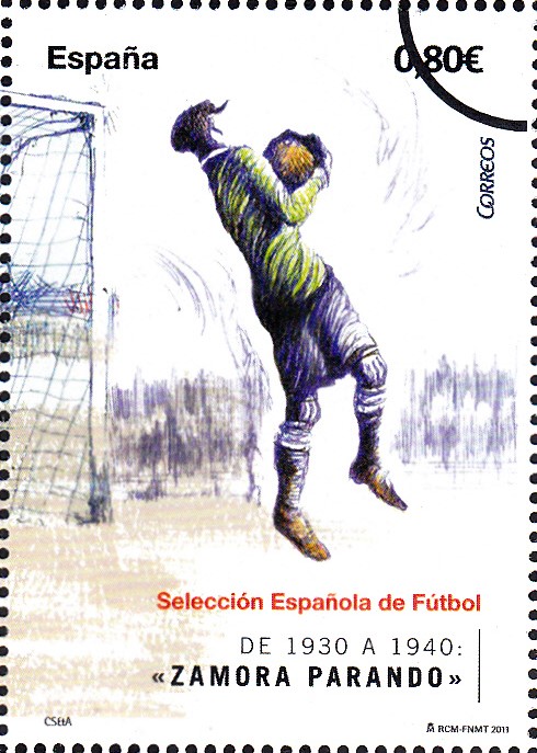 In Spanien erschien 2011 in der Ausgabe "Geschichte der Fußball-Nationalmannschaft" eine Marke (MiNr 4627) mit Pichichi. Hier zeige ich eine "Mustermarke".
