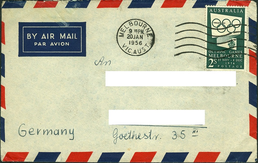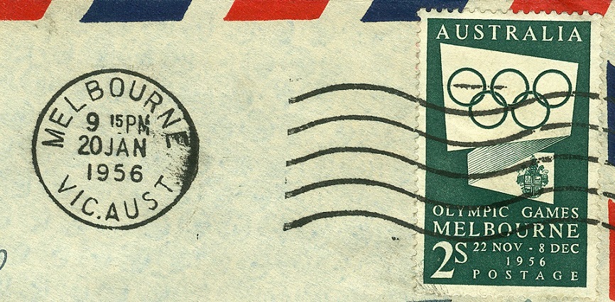 Diese Marke der australischen Post war viele Monate vor den Spielen in Melbourne erschienen. Das Stempeldatum zeigt Januar 1956 an. Und obwohl die Melbourner Spiele Sommerspiele waren, fanden sie im kalendarischen Winter statt: 22. November - 8. Dezember 1956.