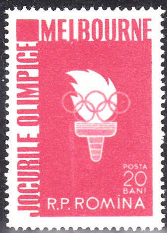 In Rumänien erschien diese Marke (MiNr 1598) mit einer olympischen Fackel in der Serie zu den Sommerspielen 1956 in Melbourne.