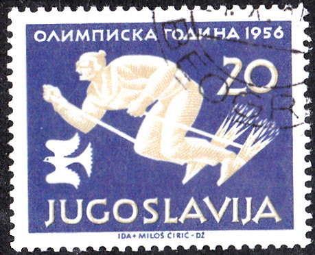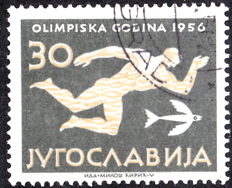 Aus Jugoslawien kommt dies Marke (MiNr 804) zu den Olympischen Spielen 1956 in Melbourne mit der Abbildung eines Läufers.