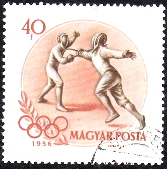 Auch in Ungarn gab es zu den Olympischen Sommerspielen 1956 in Melbourne eine Markenserie. Hier die Marke zu 20 Filler (MiNr 1472) mit der Abbildung eines Kanuten beim Einer-Kajak.