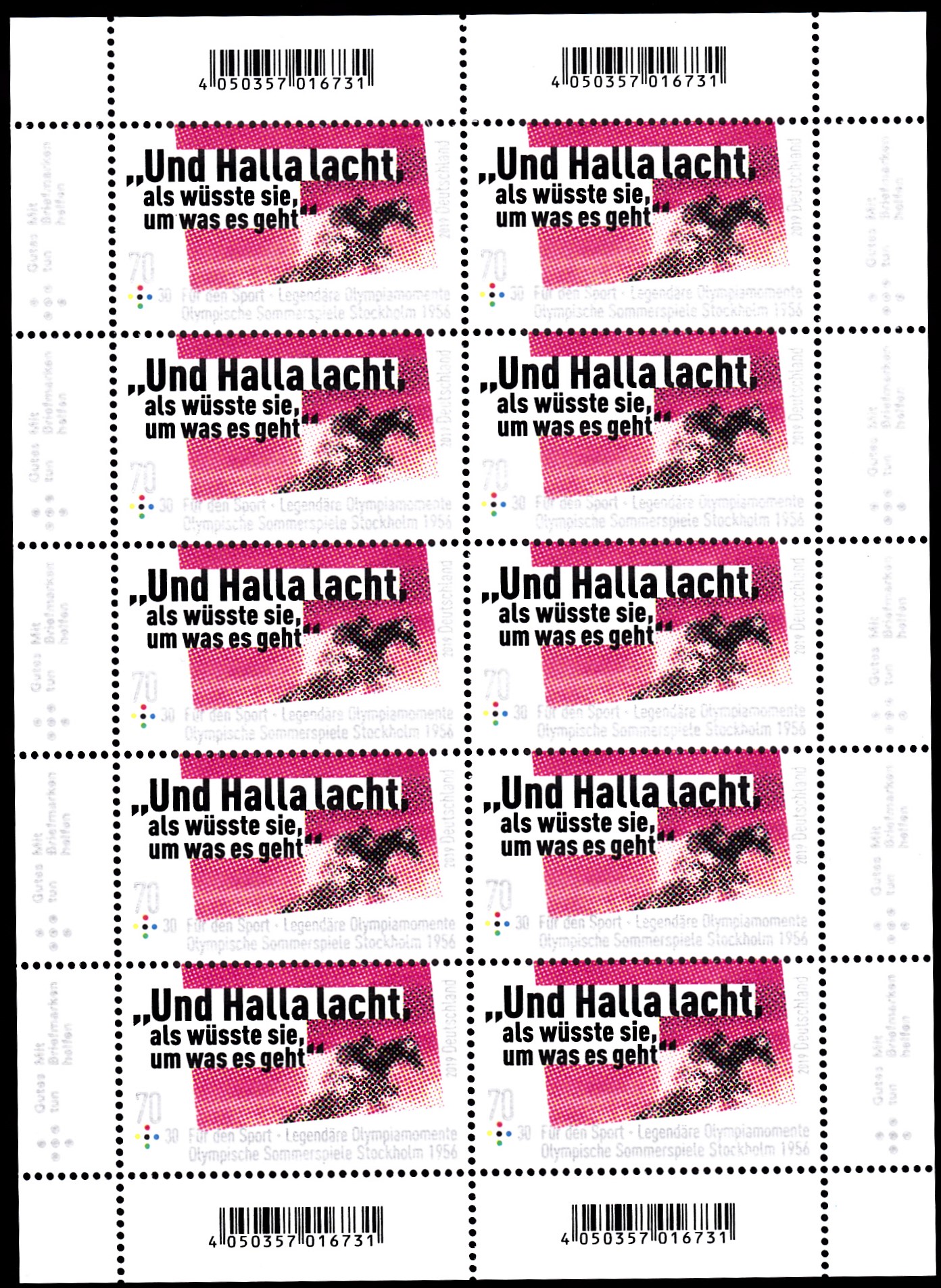 Auf der Marke "Für den Sport" 2019 zu 70+30 Cent (MiNr 3460) wird an den Ausspruch "und Halla lacht, als wüsste sie, um was es geht." des Reporters Hans-Heinrich Isenbarth erinnert.