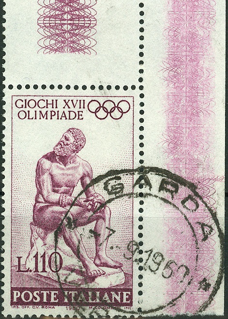 Dagegen ist der „Faustkämpfer von Quirinal“ weniger bekannt, aber als solcher durch die Handbandagen auf dem 110-Lire-Wert sicher zu erkennen? Boxen ist nach wie vor eine der „klassischen“ Olympiasportarten.