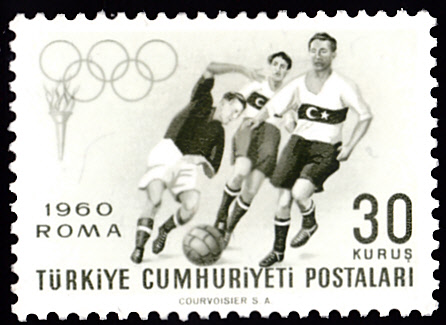 Auf dieser Marke aus der Türkei (MiNr 1769) sehen wir eine Spielszene beim Fußball.
