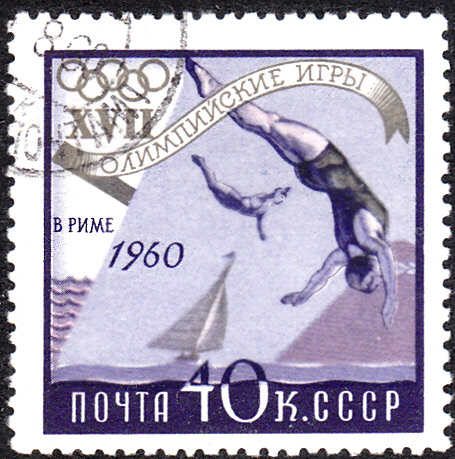 Es erschien zu den Spielen in Rom in der UdSSR eine Serie mit zehn Marken. Hier die Marke zu 5 Kopeken (MiNr 2369) mit vier Läufer beim Zieleinlauf.