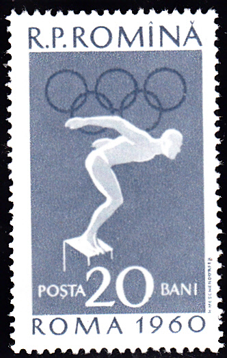 In Rumänien erschiene in einer Serie diese Marke (MiNr 1847) mit einem Schwimmer beim Absprung vom Startblock.