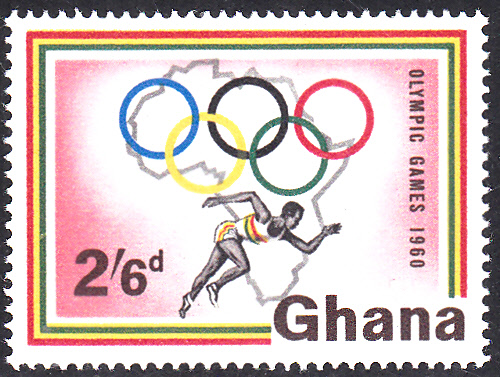 Aus Ghana waren in Rom 13 Teilnehmer/innen vertreten und belegte mit einer Silbermedaille im Medaillenspiegel den 32.Platz. In Ghana sind in einer Serie zwei bildgleiche Marken mit der Abbildung einer Hand mit der Olympischen Fackel und den Olympischen Ringen erschienen.