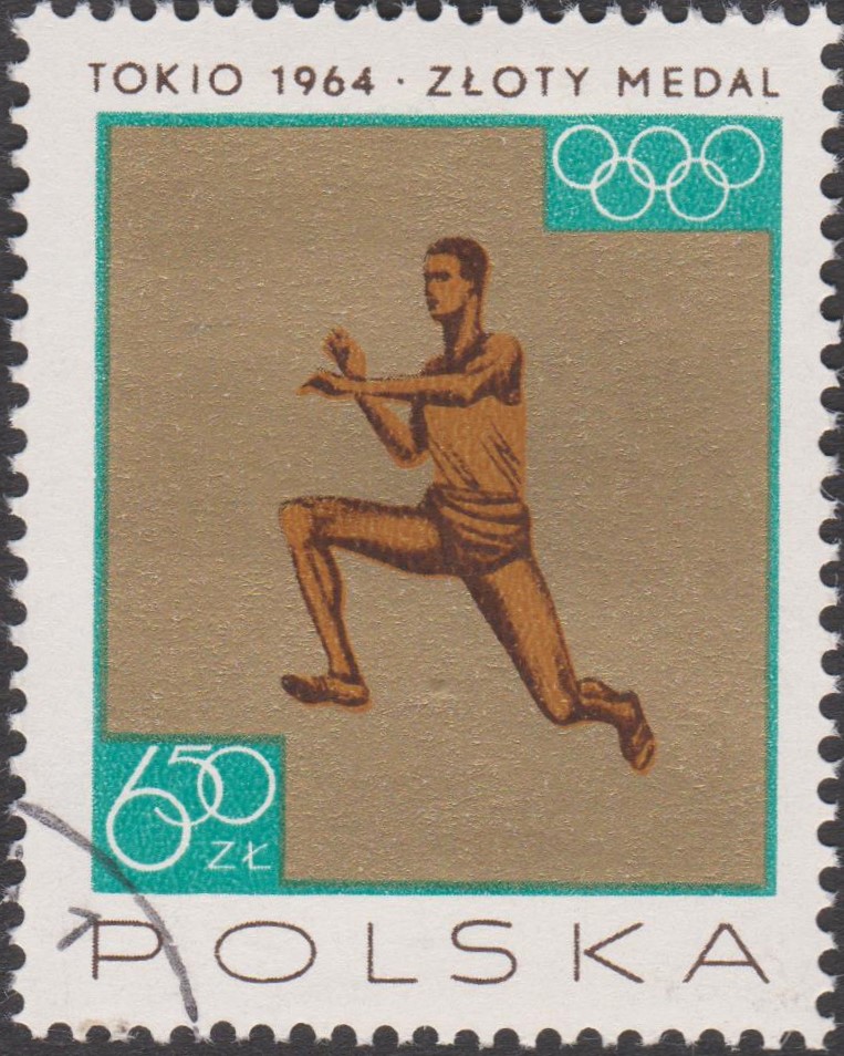 Polen MiNr. 1629 würdigt die von Józef Szmidt errungene Goldmedaille im Dreisprung bei den Olympischen Spielen in Iokio 1964: