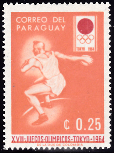 Aus Paraguay kann ich hier drei bildgleiche Marken mit einem Diskuswerfer zu den Sommerspielen 1964 zeigen.