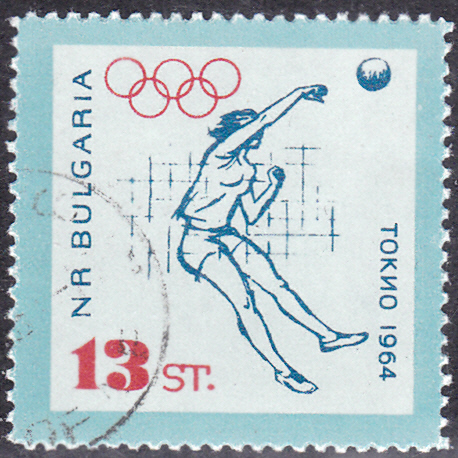 Ich kann hier noch eine Marke (MiNr 1492) der bulgarischen Serie mit einer Volleyballspielerin bei einem Schmetterball zeigen.