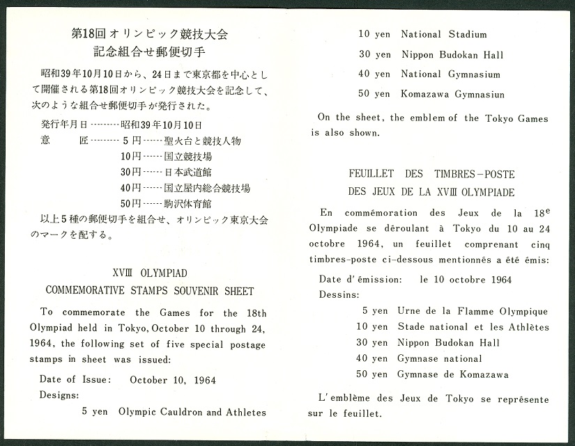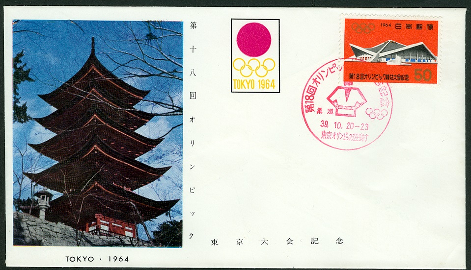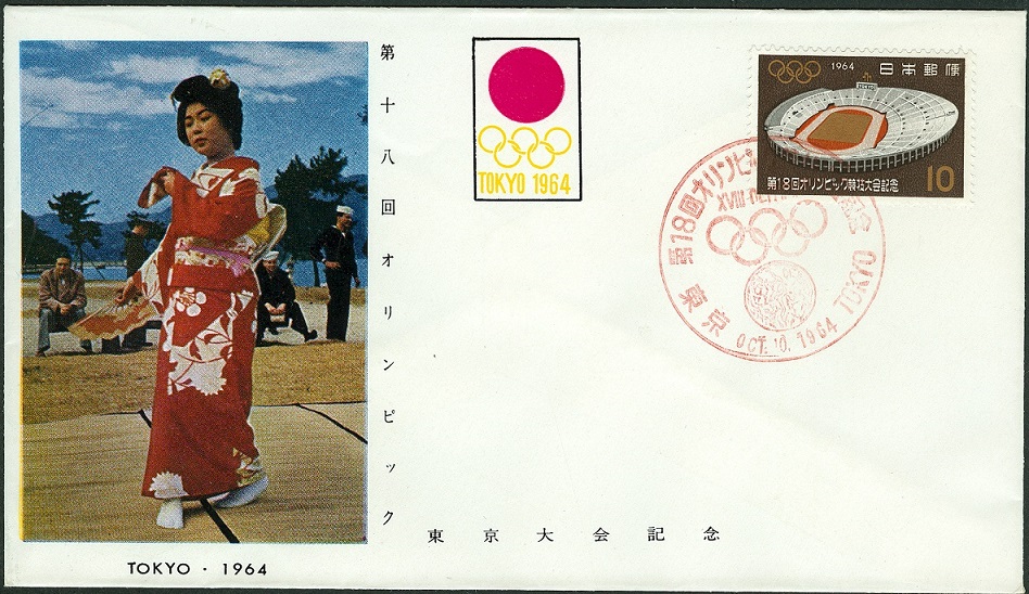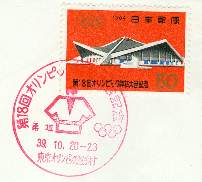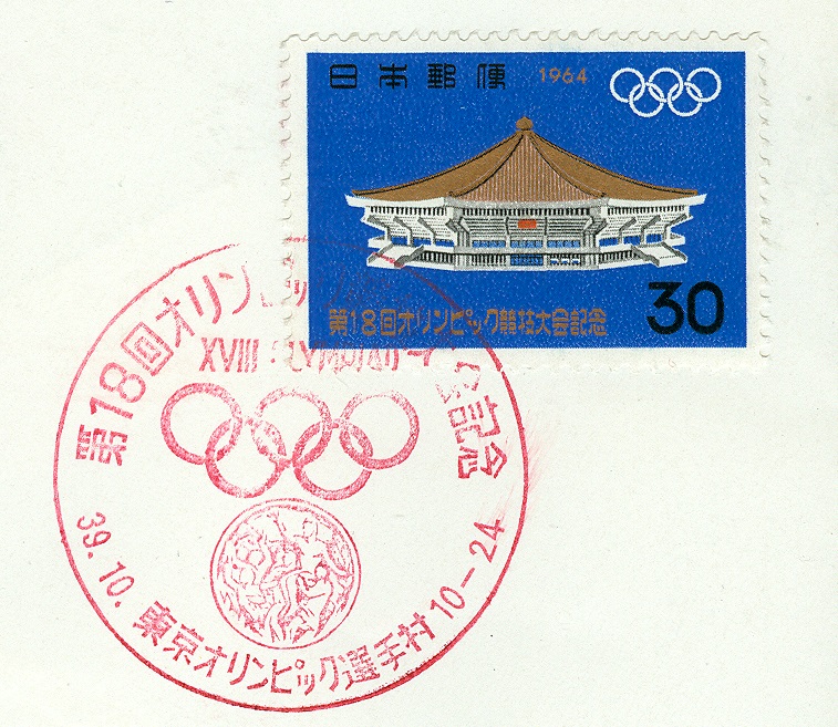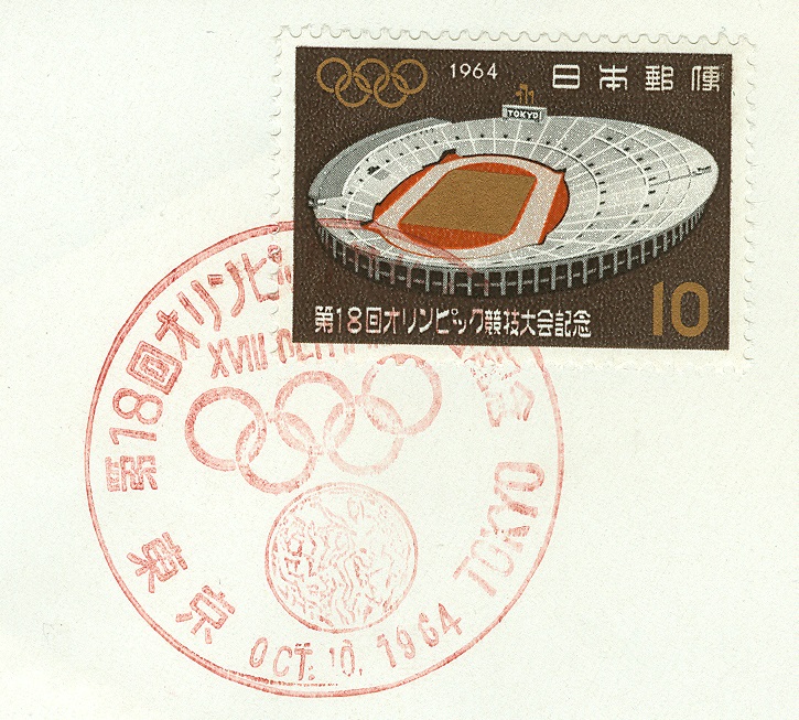 Der Sondestempel datiert mit dem 10. Oktober 1964, dem Eröffnungstag der Spiele.