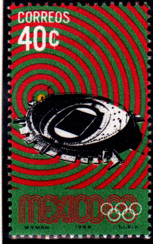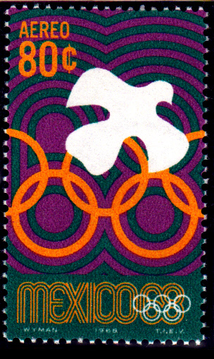 Hier der erste Wert (MiNr 1283) dieser Serie. Im Markenbild sehen wir die Landkarte von Mexiko mit einer Friedenstaube.