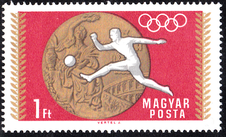 in der Serie "Medaillengewinne der ungarischen Mannschaft bei der Olympischen Sommerspielen 1968 in Mexiko-Stadt" wurde dieser Olympiasieg von Angéla Németh auf der Marke zu 40 Filler (MiNr 2477) A gewürdigt.