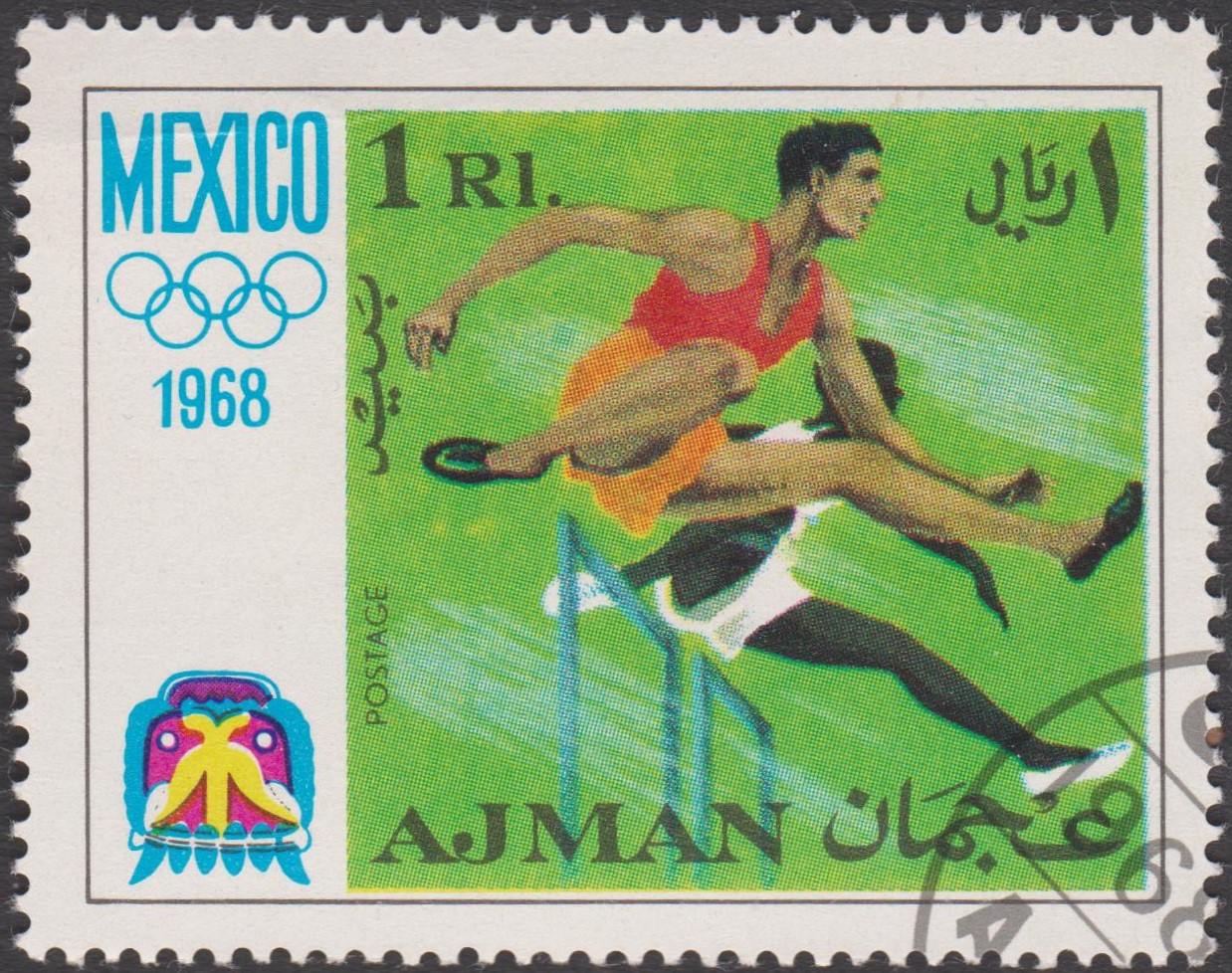 Hier Ajman MiNr. 249, die Hürdenläufer darstellt: