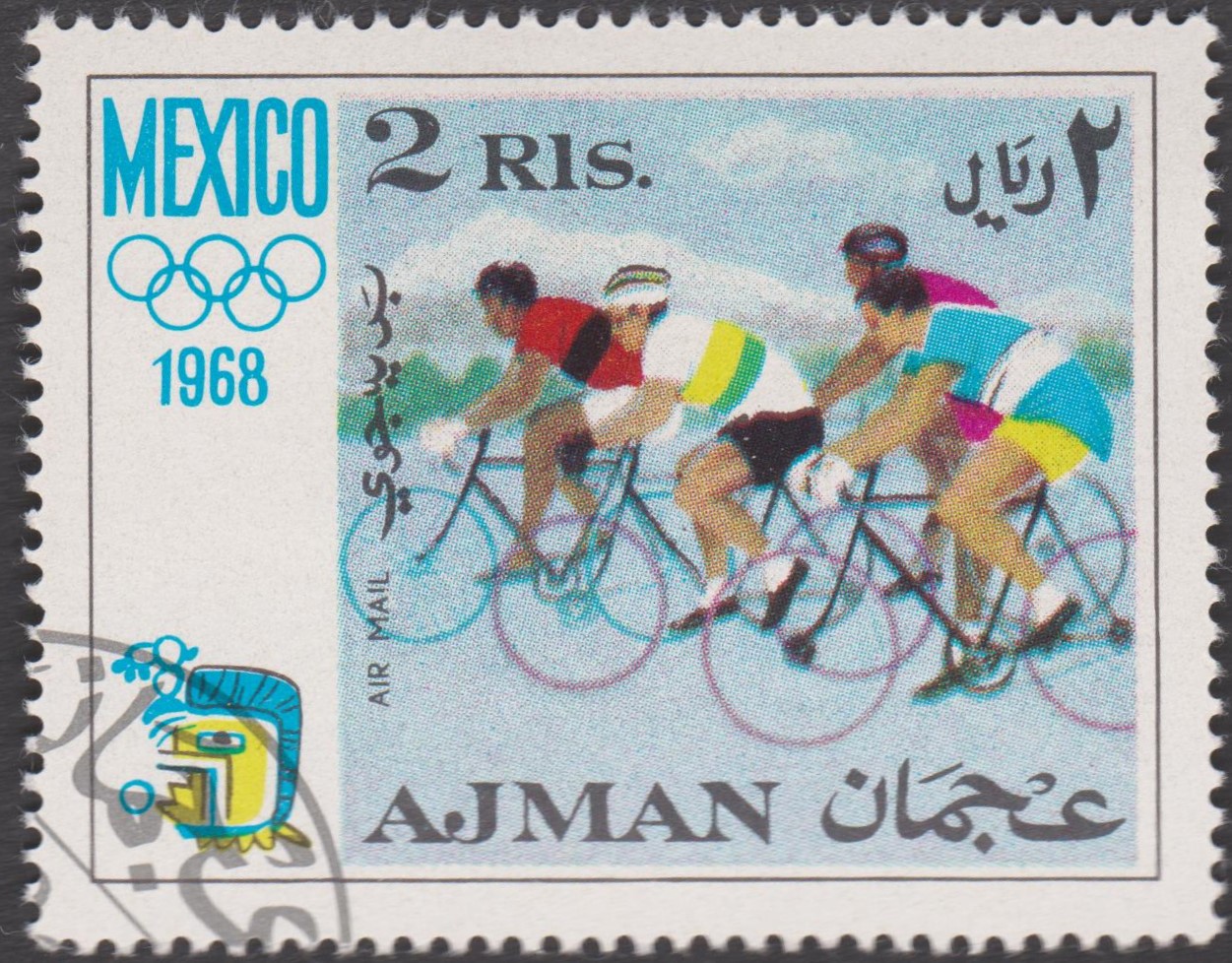 Hier Ajman MiNr. 253, die Radfahrer darstellt: