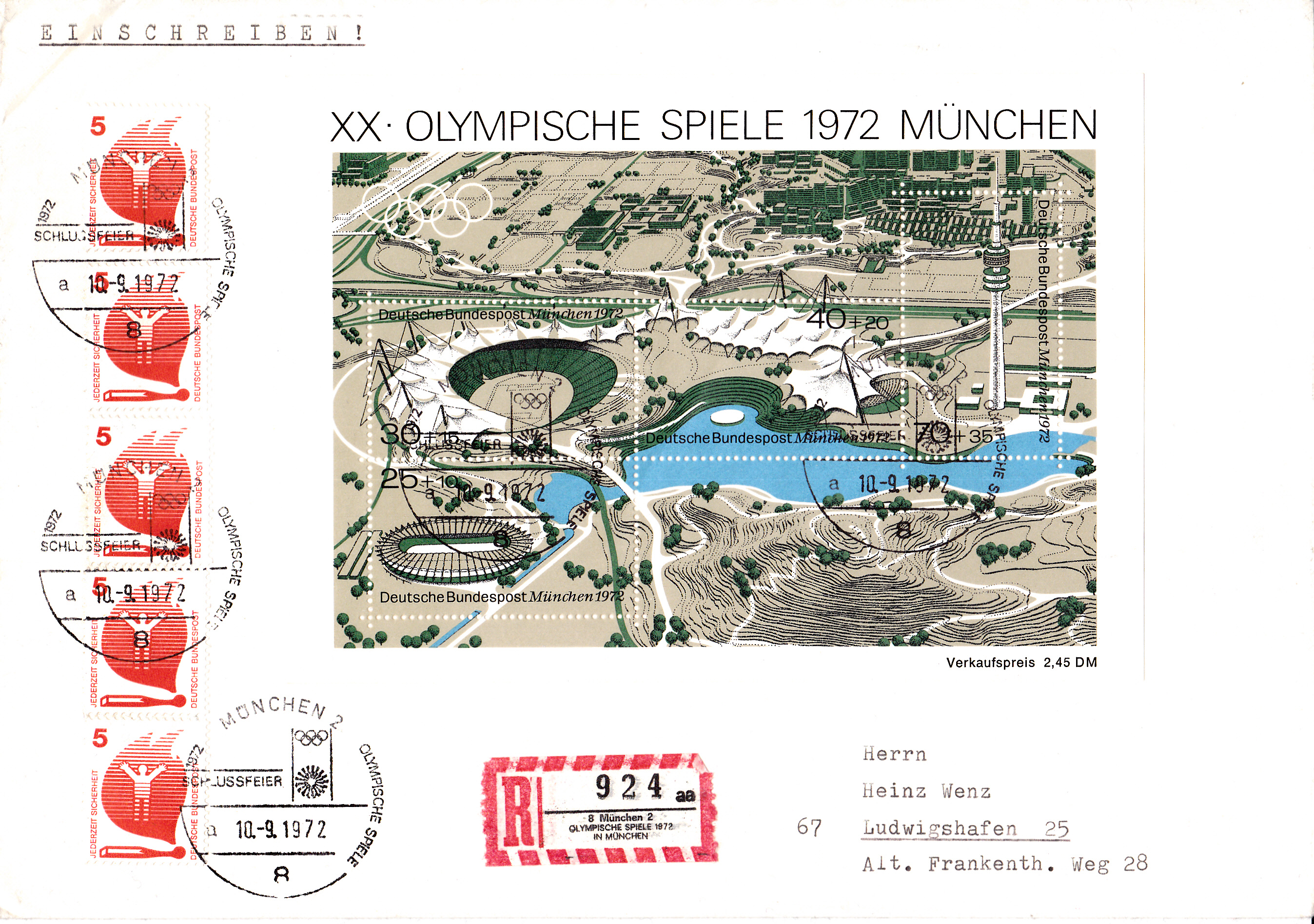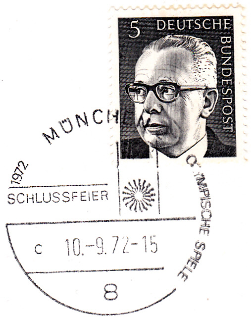 Hier der Sonderstempel zur Schlussfeier vom 10.9.1972 mit Uhrzeit und Kennbuchstaben "a".