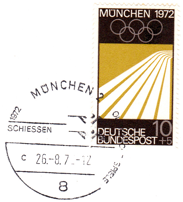 Hier ein Stempelabschlag "Basketball" vom 26.8.1972 mit Uhrzeit und Kennbuchstaben "a".