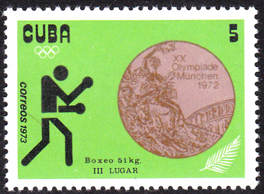 In der gleichen Serie "Medaillengewinne bei den Olympischen Sommerspielen 1972 in München" erschien in Kuba zu seiner Bronzemedaille diese Marke (MiNr 1843).