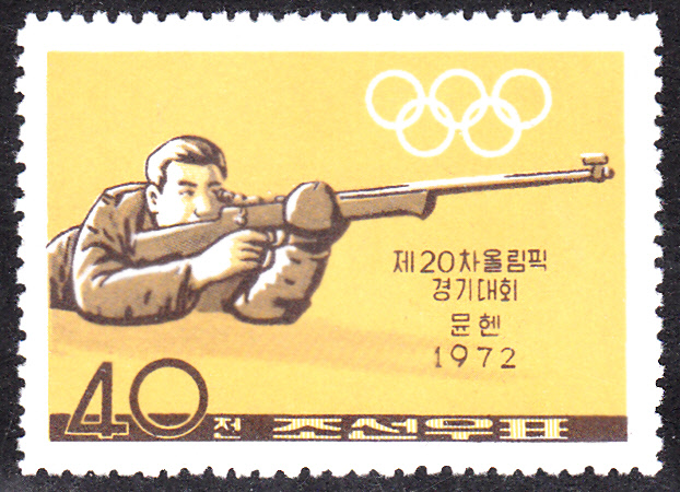Diese Marke (MiNr 1107) mit einem Sportschützen beim liegend Schießen beendet die Serie Nordkoreas.