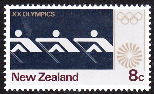Beim Rudern siegte bei den Olympischen Spielen 1972 im Achter die Mannschaft aus Neuseeland. Zum Gewinn dieser Goldmedaille ist 1973 in Neuseeland diese Marke (MiNr 601) in einer Serie "Jahrestage und Ereignisse" erschienen.