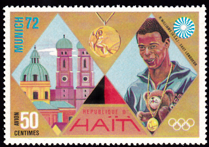 Der bereits hier vorgestellte Randy Williams, Olympiasieger 1972 im Weitsprung, ist auf dieser Marke (MiNr 1210) im rechten Markenteil gezeigt.