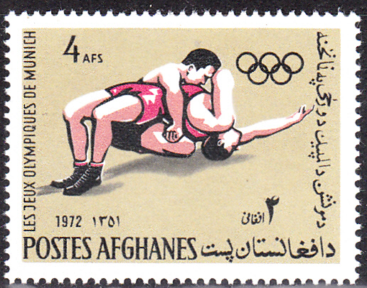 Die drei anderen wieder bildgleichen Marken aus Afghanistan zeigen ebenfalls zwei Ringer beim Kampf.