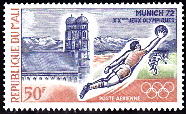 Die Serie aus Mali zu den Sommerspielen 1972 enthält vier Marken. Auf der ersten Marke (MiNr 316) werden ein Fußballtorwart und die Frauenkirche in München gezeigt.
