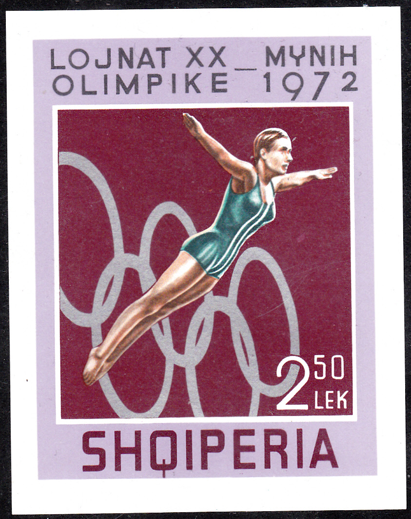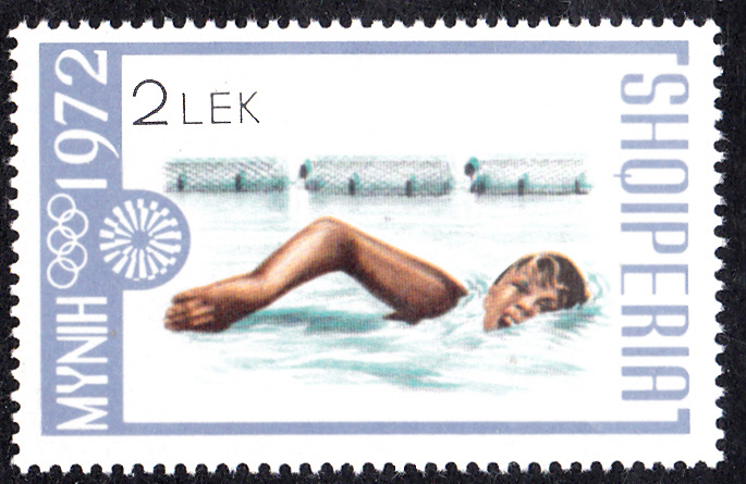 Bereits 1971 war eine weitere Markenserie zu den Olympischen Spielen 1972 in ALbanien erschgienen. Hier der erste Wert dieser Serie (MiNr 1499) mit einem Sprinter beim Start.