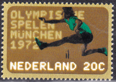 Aus der niederländischen Serie zu den Sommerspielen 1972 stammt diese Marke (MiNr 991) mit einer Hürdenläuferin.