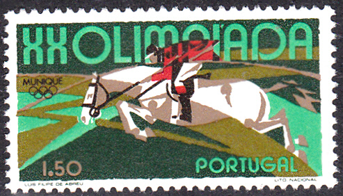 Auf der Marke zu 1,50 Escudo (MiNr 1174) erkennt man eine Springreiter.