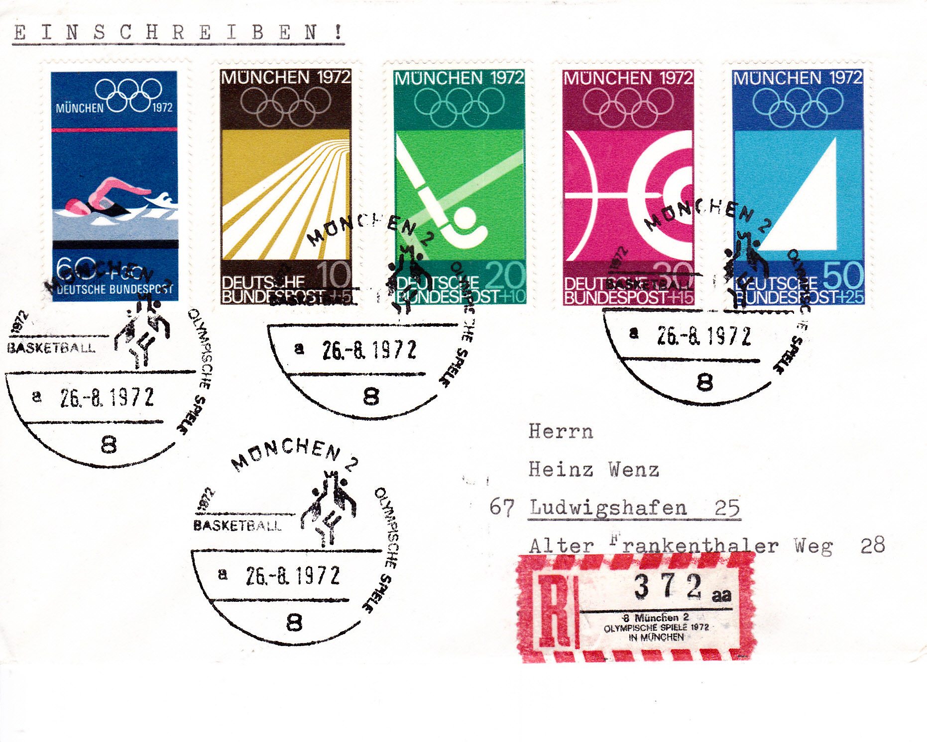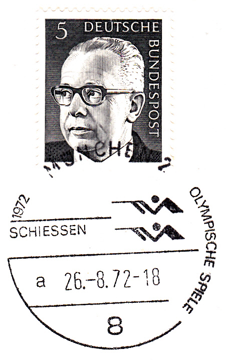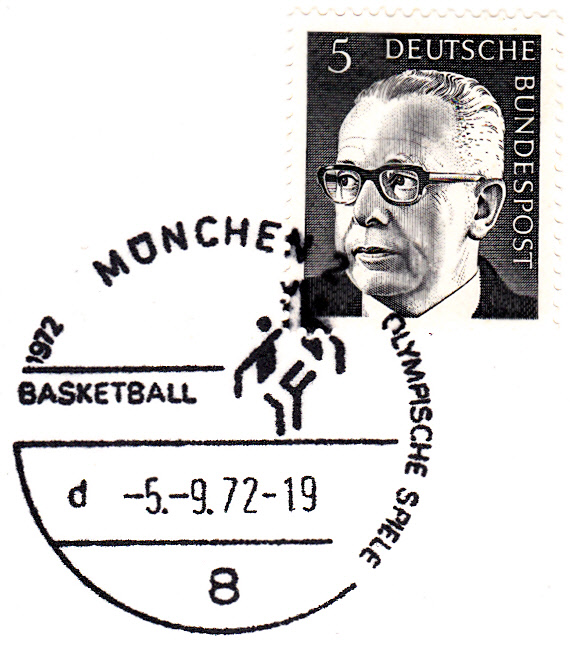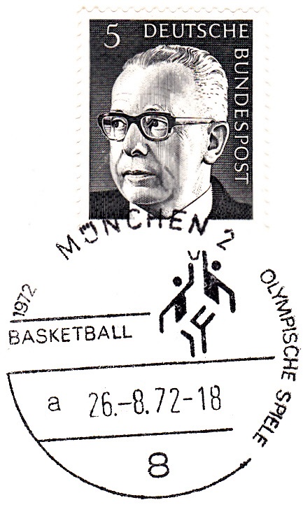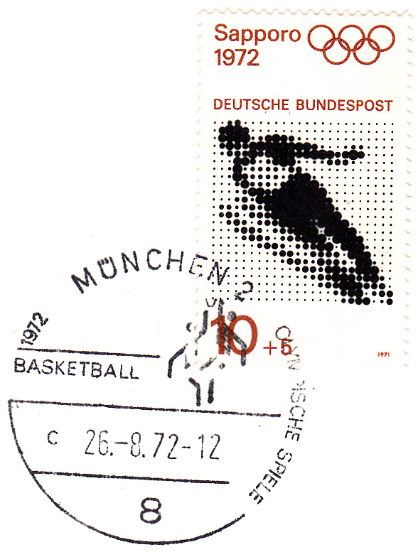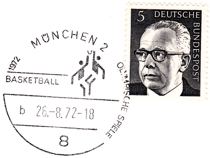 Hier ein Stempelabschlag "Basketball" vom 26.8.1972 mit Uhrzeit und Kennbuchstaben "a".