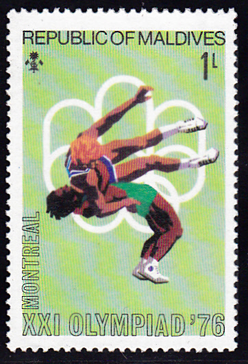 Hier zeige ich eine Marke aus einem Satz der Malediven (MiNr 663) zu den Spielen in Montreal. Im Markenbild wird eine Szene aus einem Ringkampf dargestellt.