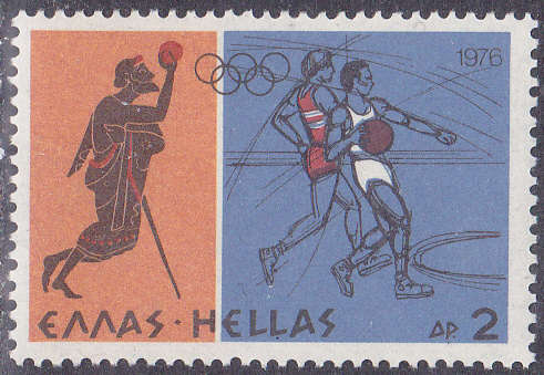 In Griechenland erschien in einer Serie zu den Sommerspielen 1976 diese Marke (MiNr 1240) zum Thema Weitsprung mit einer antiken und einer "modernen" Darstellung.
