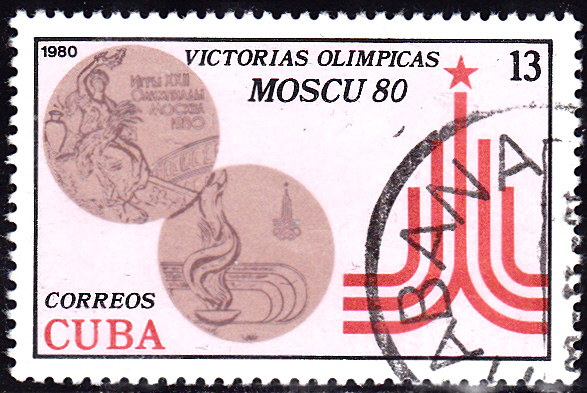 Es erschien in Kuba eine Markenausgabe mit drei Marken, die jeweils die Vorder- und Rückseite einer Gold-, einer Solber- und einer Bronzemedaille zeigen. Hier zeige ich die Marke (MiNr 2515) mit der Bronzemedaille.