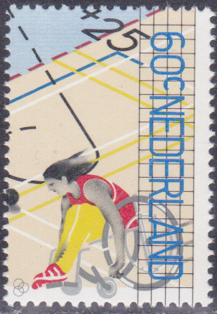 In den Niederlande ist dazu diese Marke (MiNr 1164) mit einer Sportlerin im Rollstuhl und einem Spielfeld erschienen.