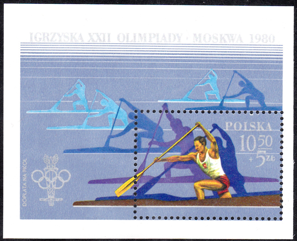 In Polen erschien auch noch eine Blockausgabe (MiNr Block 81 mit Marke MiNr 2678). Auf Marke und Block sind Einer-Kajaks abgebildet.