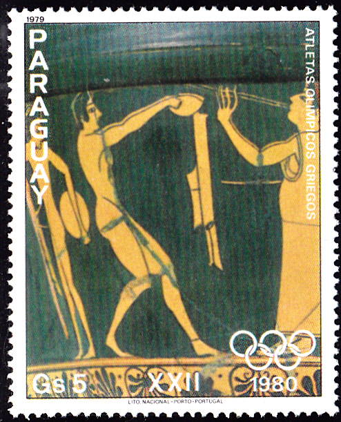In Paraguay ist im Dezember 1979 eine Serie zu den Olympischen Spielen 1980 erschienen mit "Olympioniken" nach Gemälden auf griechischen Vasen.