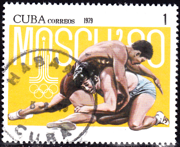 Auf Kuba ist in einer Serie zu den Olympischen Spielen in Moskau diese Marke (MiNr 2413) mit zwei Ringer beim Kampf erschienen.