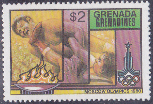 Die letzte Marke dieser Serie aus Grenada/Grenadinen (MiNr 397) zeigt zwei Ringer.