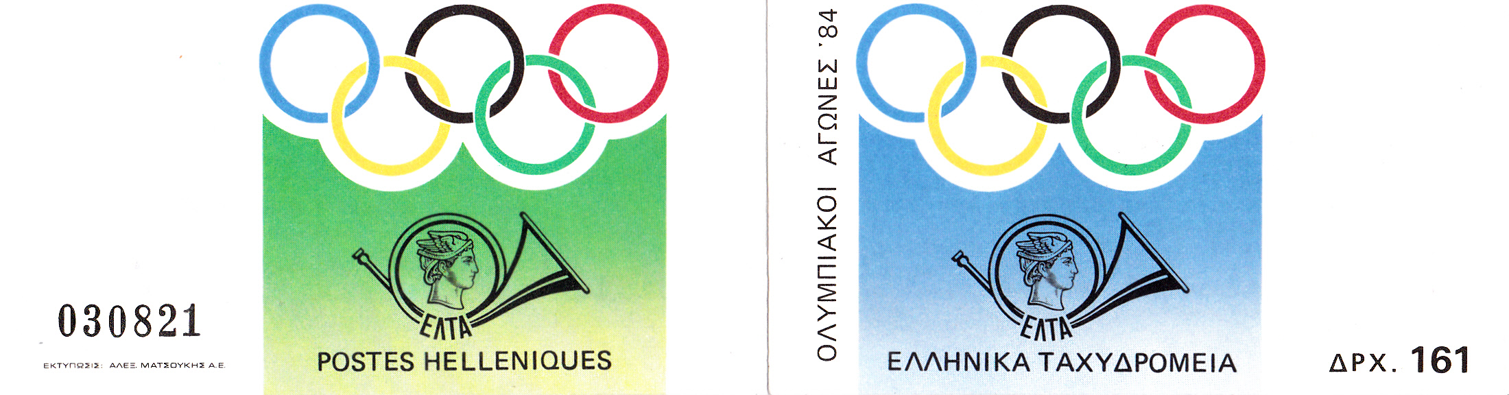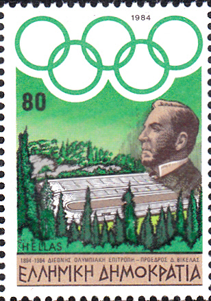 Auf der letzten Marke dieser Serie Griechenlands ist ein Antikes Stadion in Athen zu sehen. Außerdem wird ein Porträt von Dimitrios Vikelas, (geb. 15. Februar 1835 in Ermoupolis, Syros; gest. 20. Juli 1908 in Athen)gezeigt. Er war ein griechischer Geschäftsmann und Literat und erster Präsident des Internationalen Olympischen Komitees von 1894 bis 1896.
